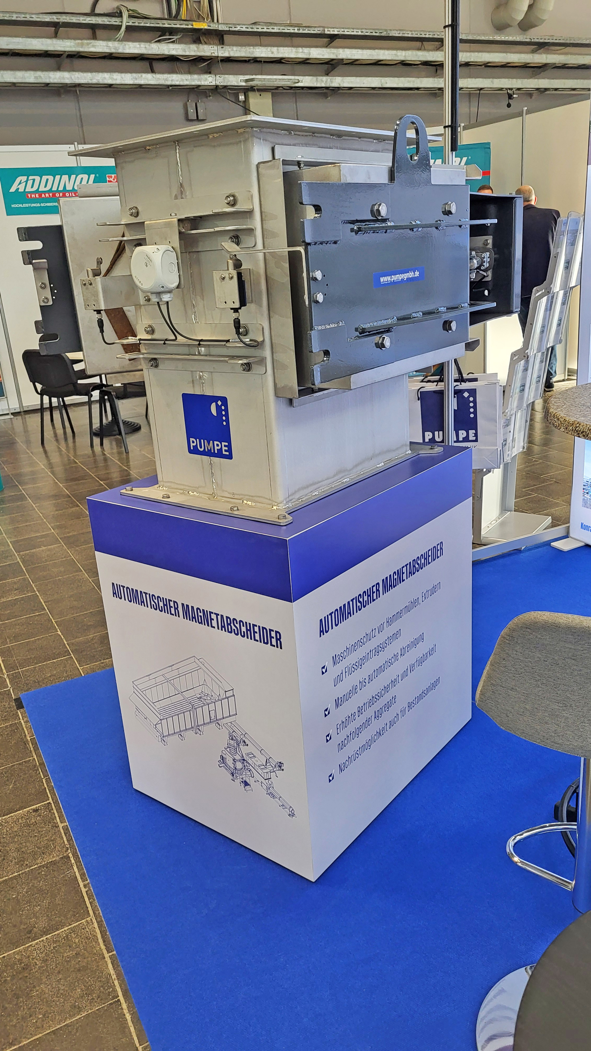 A particular highlight was the premiere of our automatic magnetic separator, which was presented to the specialist audience for the first time at this trade fair. The magnetic separator efficiently removes metallic substances from the substrate, thereby protecting downstream machines such as hammer mills, extruders and liquid feed systems from damage. It also increases the operational safety and availability of downstream units and can also be retrofitted to existing systems. Depending on the design, the magnetic separator can be cleaned manually or fully automatically.